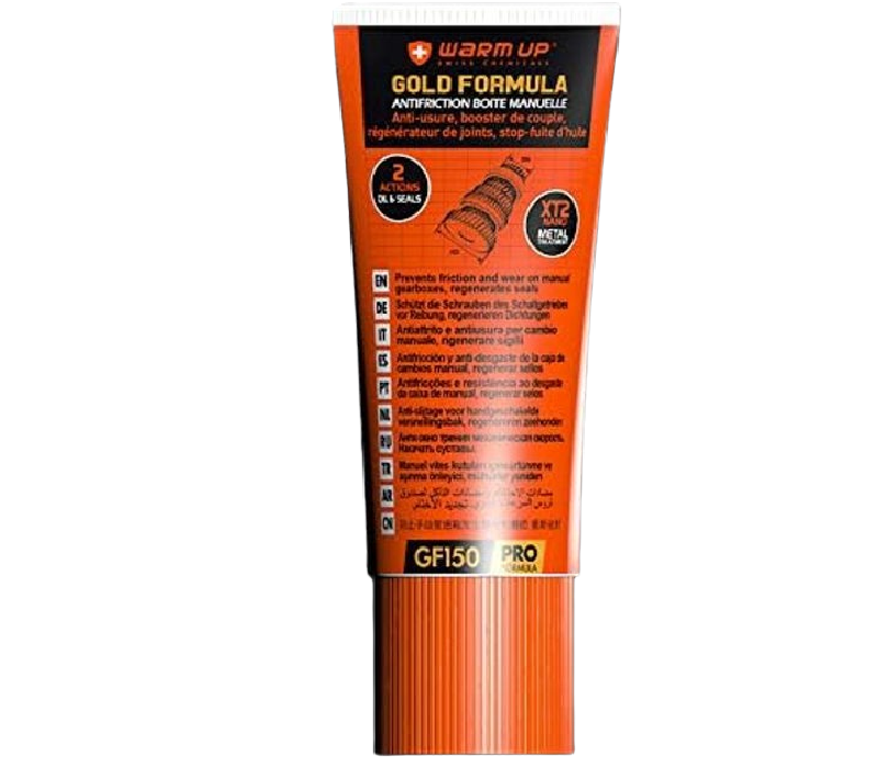 Warm Up Additif Antifriction Anti-Usure Gold Formula – Boîte Manuelle 150ml est un additif lubrifiant avancé spécialement conçu pour les boîtes de vitesses manuelles. Sa technologie puissante anti-friction et anti-usure réduit considérablement le contact métal sur métal à l’intérieur de la boîte, ce qui permet de :